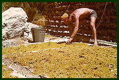 Dann werden sie auf den Drahtgestellen ausgebreitet. Die losen Trauben werden auf Tüchern ausgebreitet, gut verteilt. | ![]() |